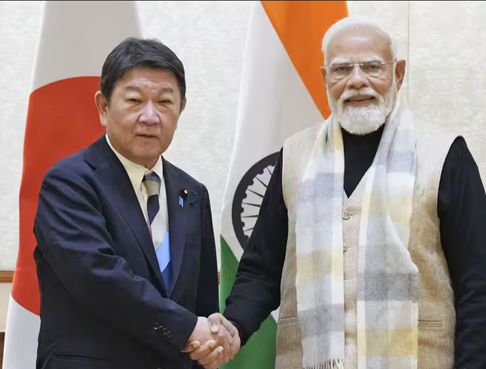 Japanese Foreign Minister Toshimitsu Motegi and Indian Prime Minister Narendra Modi